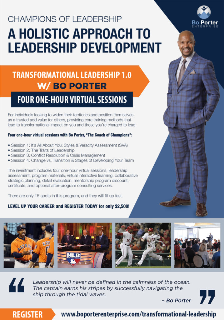 The program schedule consists of four one-hour virtual sessions with Bo Porter, “The Coach of Champions.”